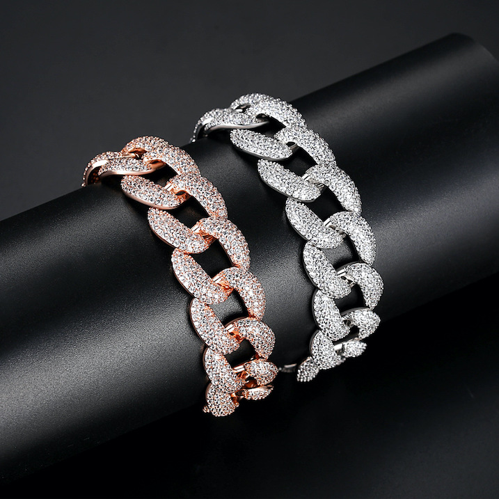 Brass Jewelry 18mm Cubic Zirconia Cuban Links Bracelet