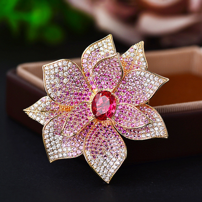 Brass Jewelry 49mm Colored Diamonds Flower Brooch