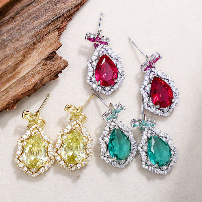 Brass Fashion Jewelry Manufacturing Colored Teardrop Stone Flower Stud Earrings