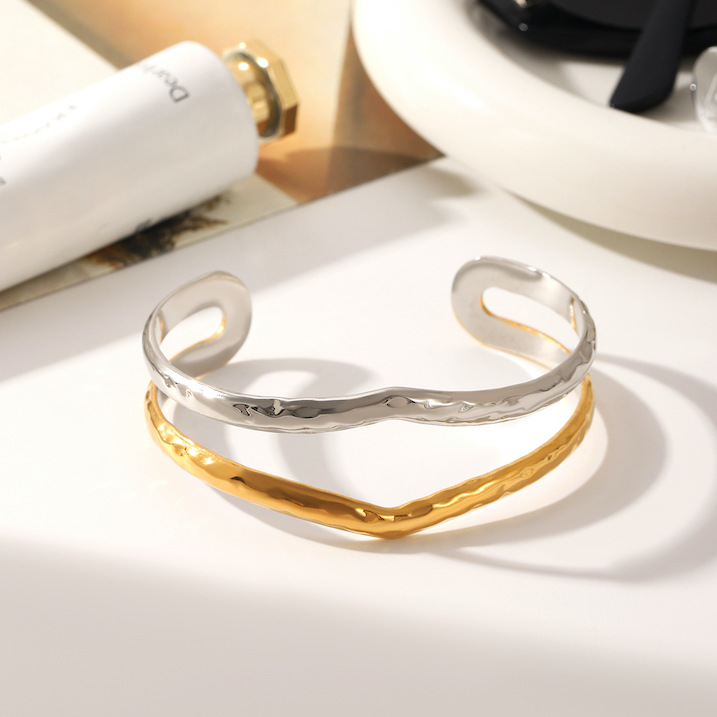 Factory Wholesales Women’s Stainless Steel Jewelry Dichroic Wires Cuff Bangle