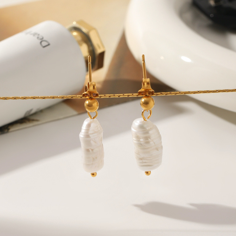 Women’s Stainless Steel Jewelry Baroque Pearl Hanging Stud Earrings